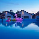 Baltyckie Domki Darlowko Villa gode di una posizione sulla spiaggia a circa 5 minuti a piedi da Park Wodny Jan e invita gli ospiti a trascorrere il tempo sulla terrazza. Dotata di un parco acquatico, aree per barbecue e un giardino, lo chalet si trova a due passi da Rejs Statkiem KROL ERYK I.